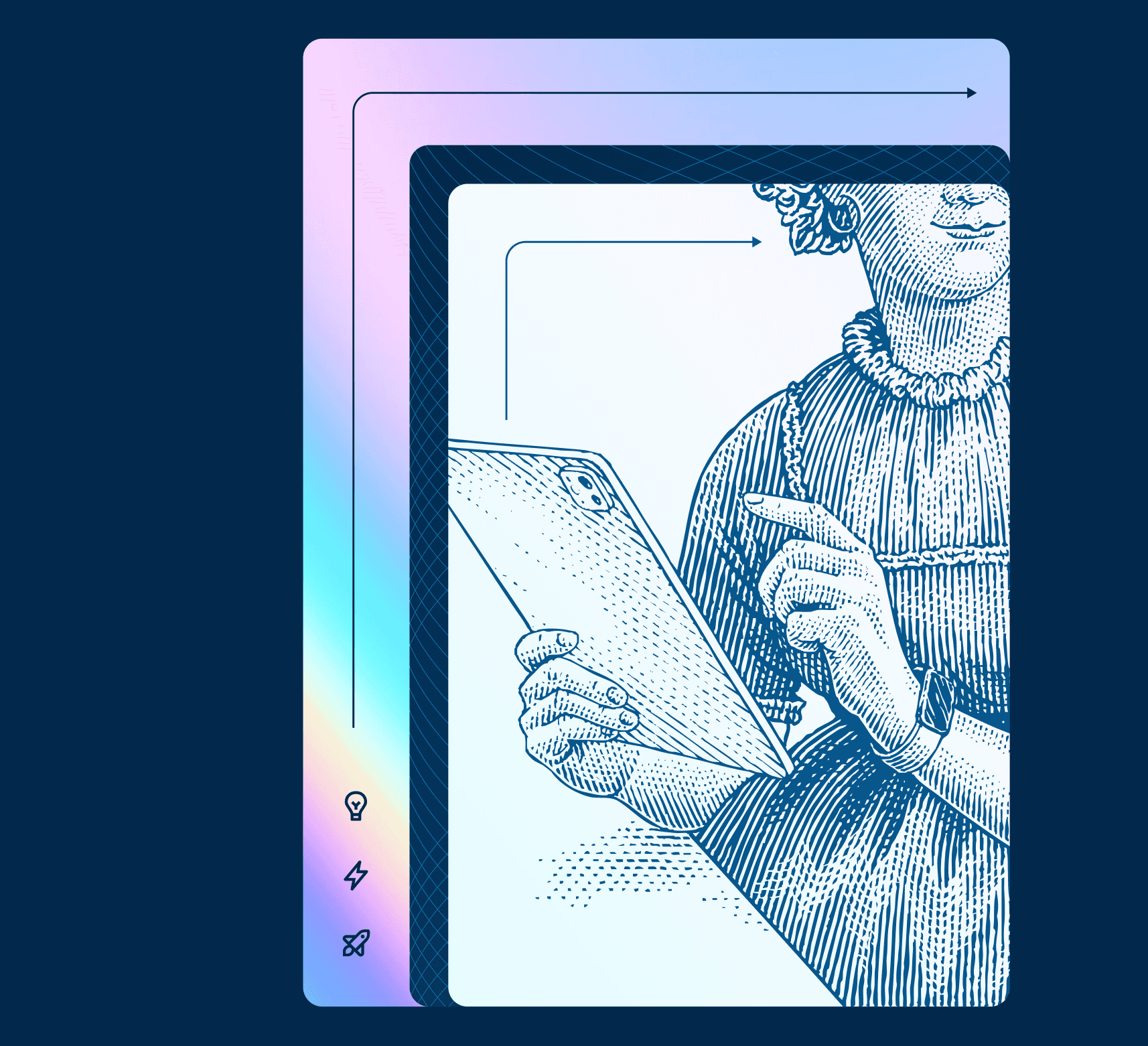 Thankfully, we set our sights on the global stage, discovering an illustrator in Eastern Europe who specialized in woodcut etching. We worked closely with Tatiana Trikoz to create bespoke illustrations for Plaid’s brand based on famous figures from paper currency. This time, we introduced technology into the picture—a visual metaphor for Plaid’s role in pioneering a new wave of digital finance.